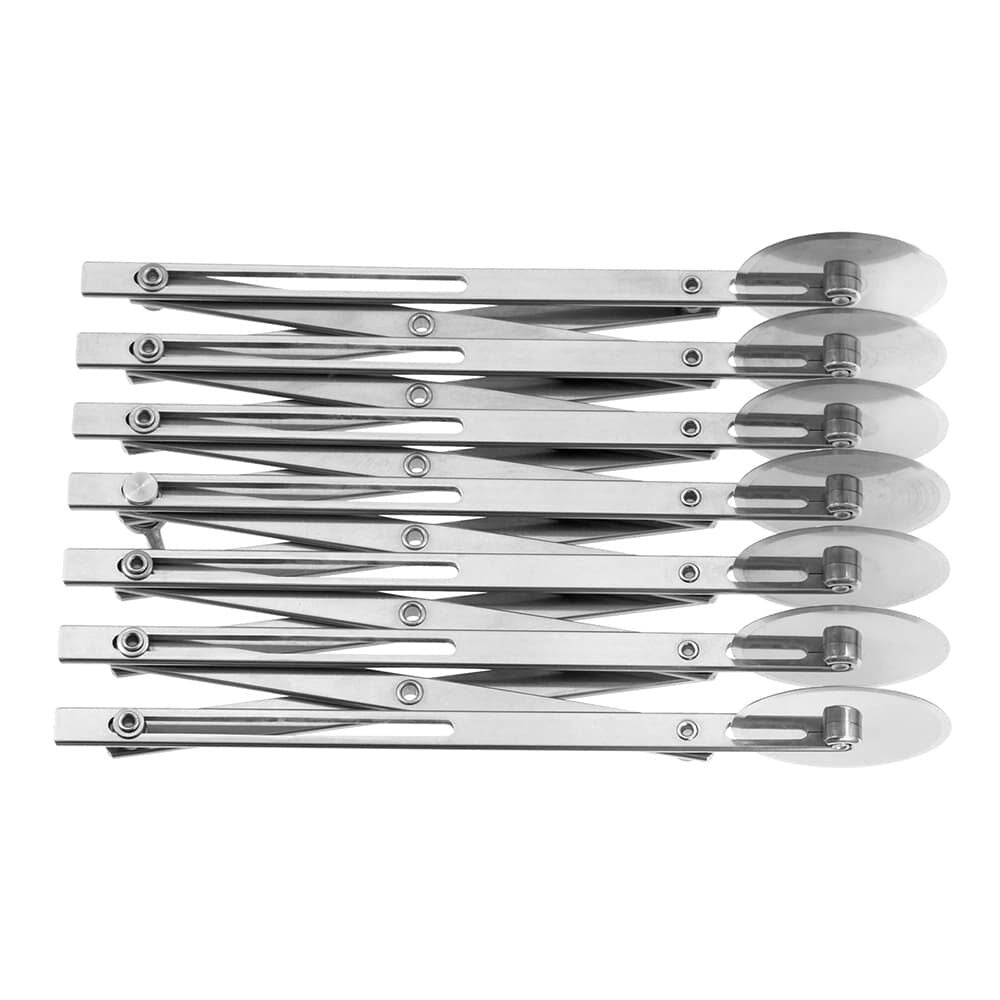 Deze verstelbare deegsnijder is ideaal voor het snijden van deeg voor croissants, pain au chocolat, kaneelbroodjes, Deense gebakjes, strudel, bladerdeeg gebakjes, pizza stroken en andere gebakken waar gelijke stroken deeg nodig zijn. Perfect voor professionele bakkerijen en patisseries die efficiënt willen werken zonder in te leveren op precisie.